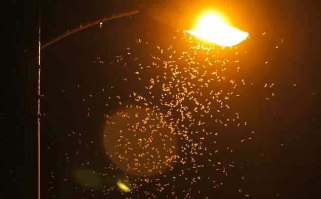 2、滅蚊燈周圍不能有強(qiáng)光源照射,否則會(huì)影響誘蚊效果。可以看一下下面這張圖,即便是普通的路燈,也能夠吸引很多蚊蟲過來。如此一來,室外滅蚊燈能夠吸引到的蚊蟲就被“分流”了。