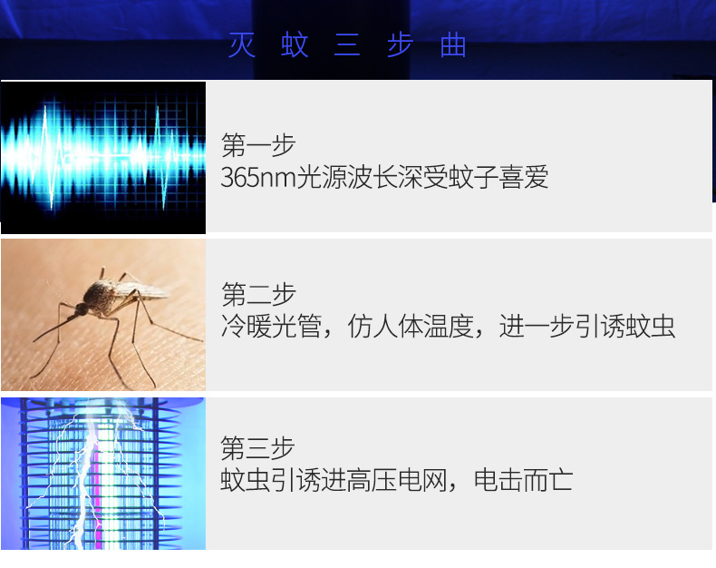3、大功率仿人體學(xué)冷暖誘蚊燈管,頻振式,誘蚊范圍大,效果好。